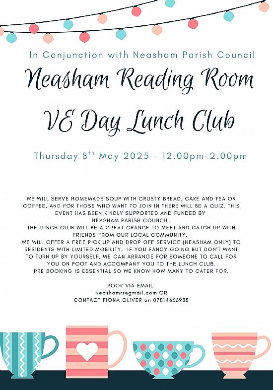 Serving homemade soup with crusty bread, cake, tea or coffee. For those who would like to join in there will be a quiz. This event has been kindly supported and funded by Neasham Parish Council.